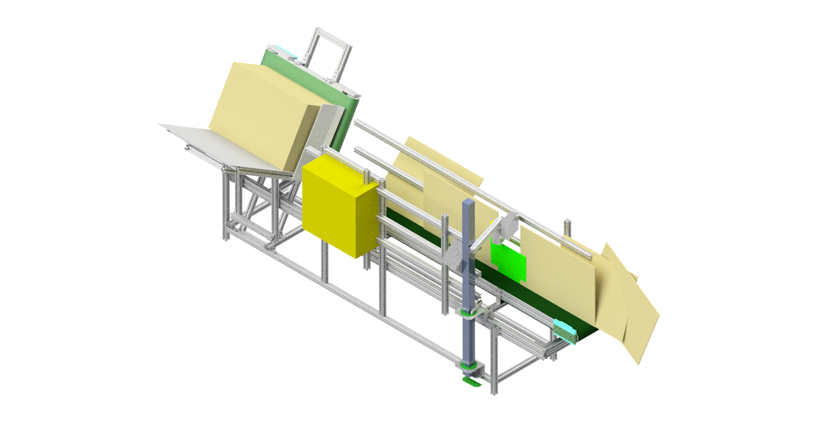Pensada para atender caixas fechadas e abertas (essas sob estudo), trabalha com um sistema de esteiras interligados que dispensação e conduzem as caixas podendo ser impressas ou etiquetadas no trajeto.
